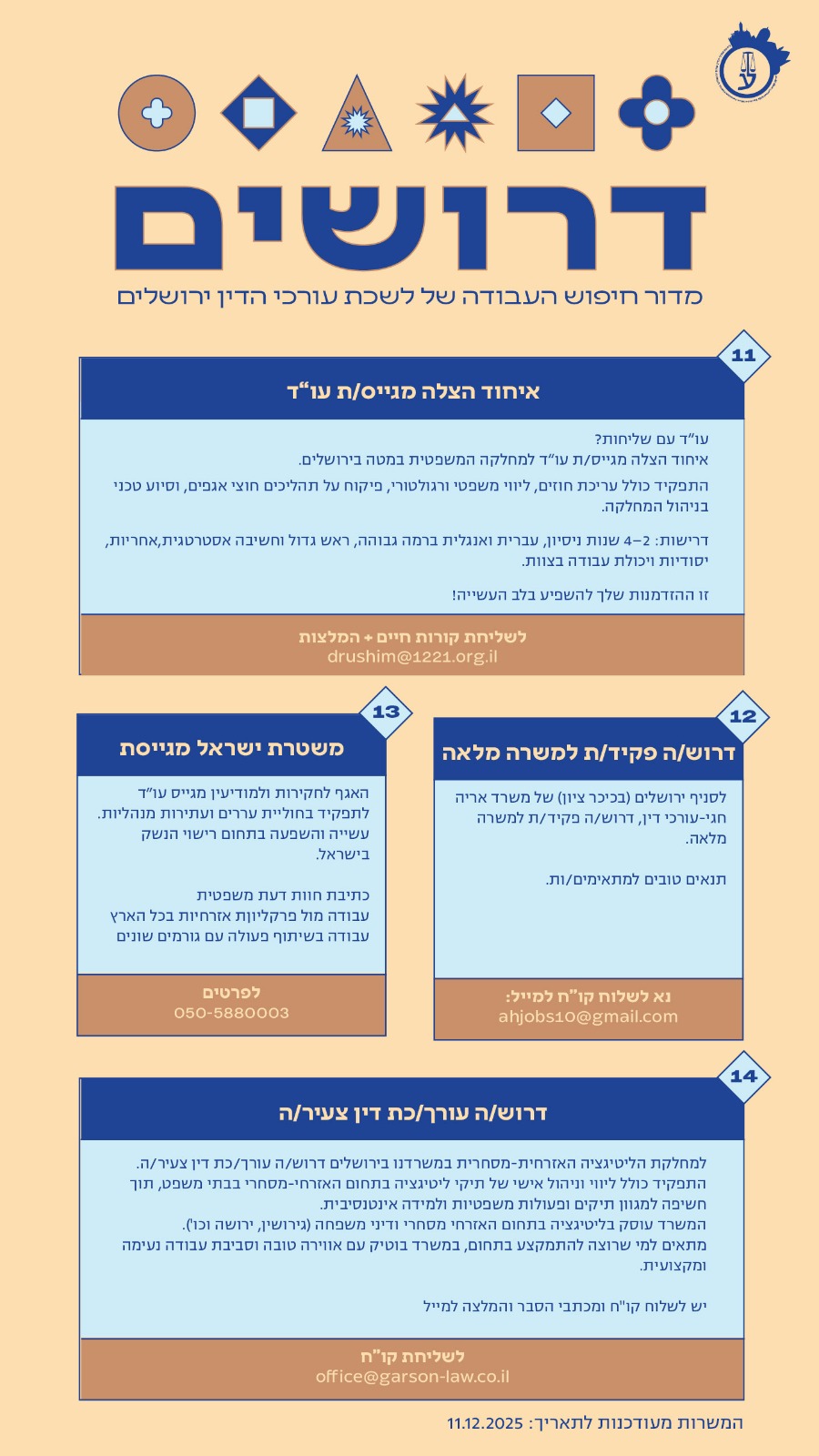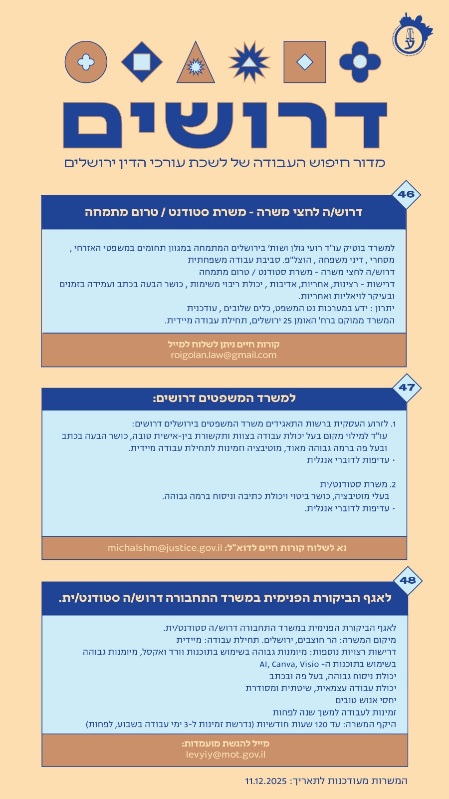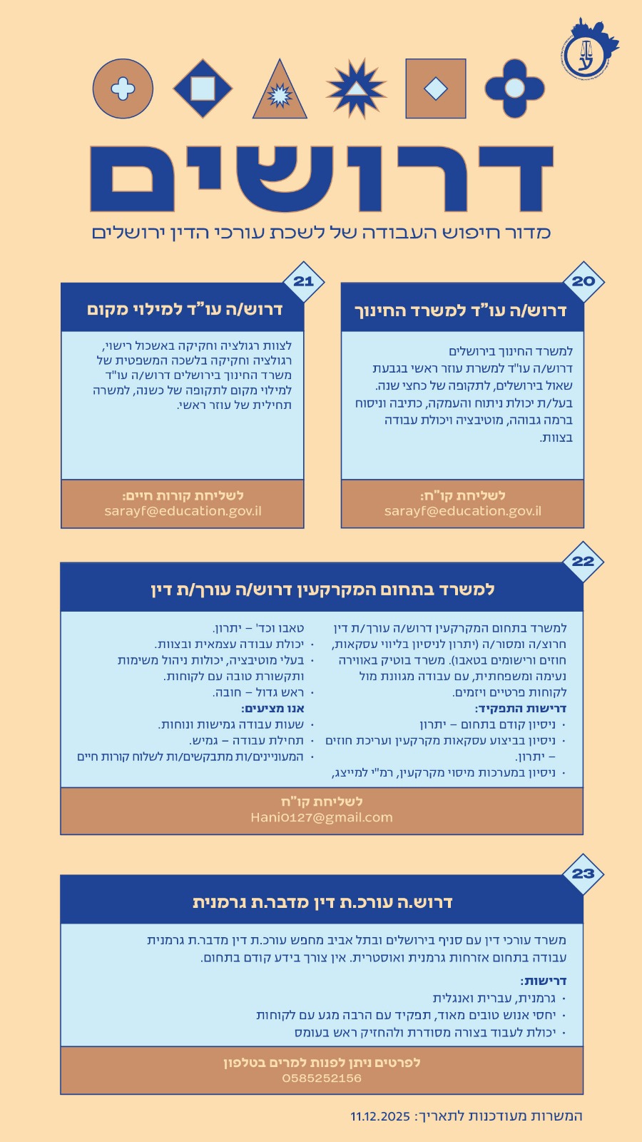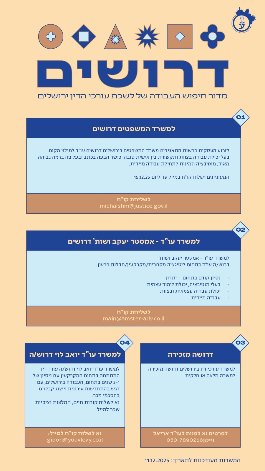 לשליחת קורות חיים: IRISVI@JUSTICE.GOV.IL
