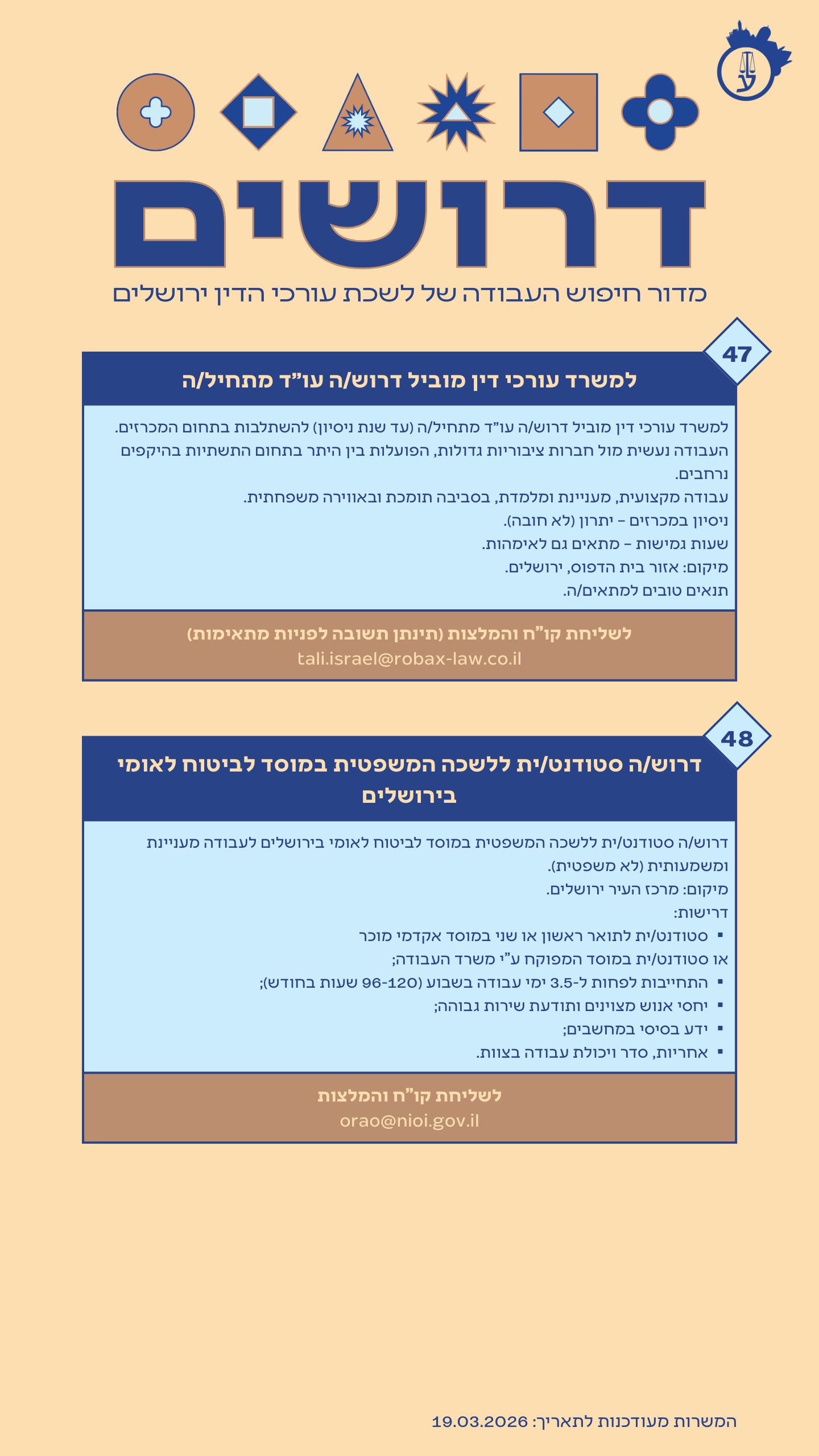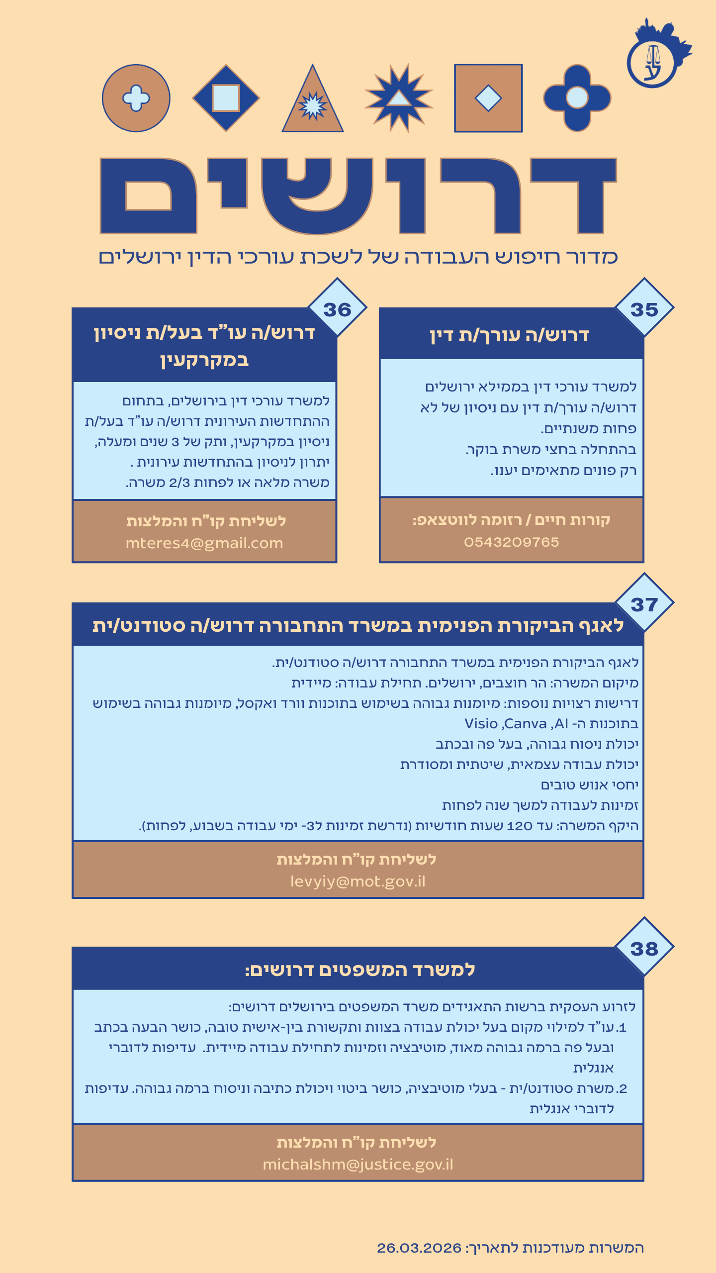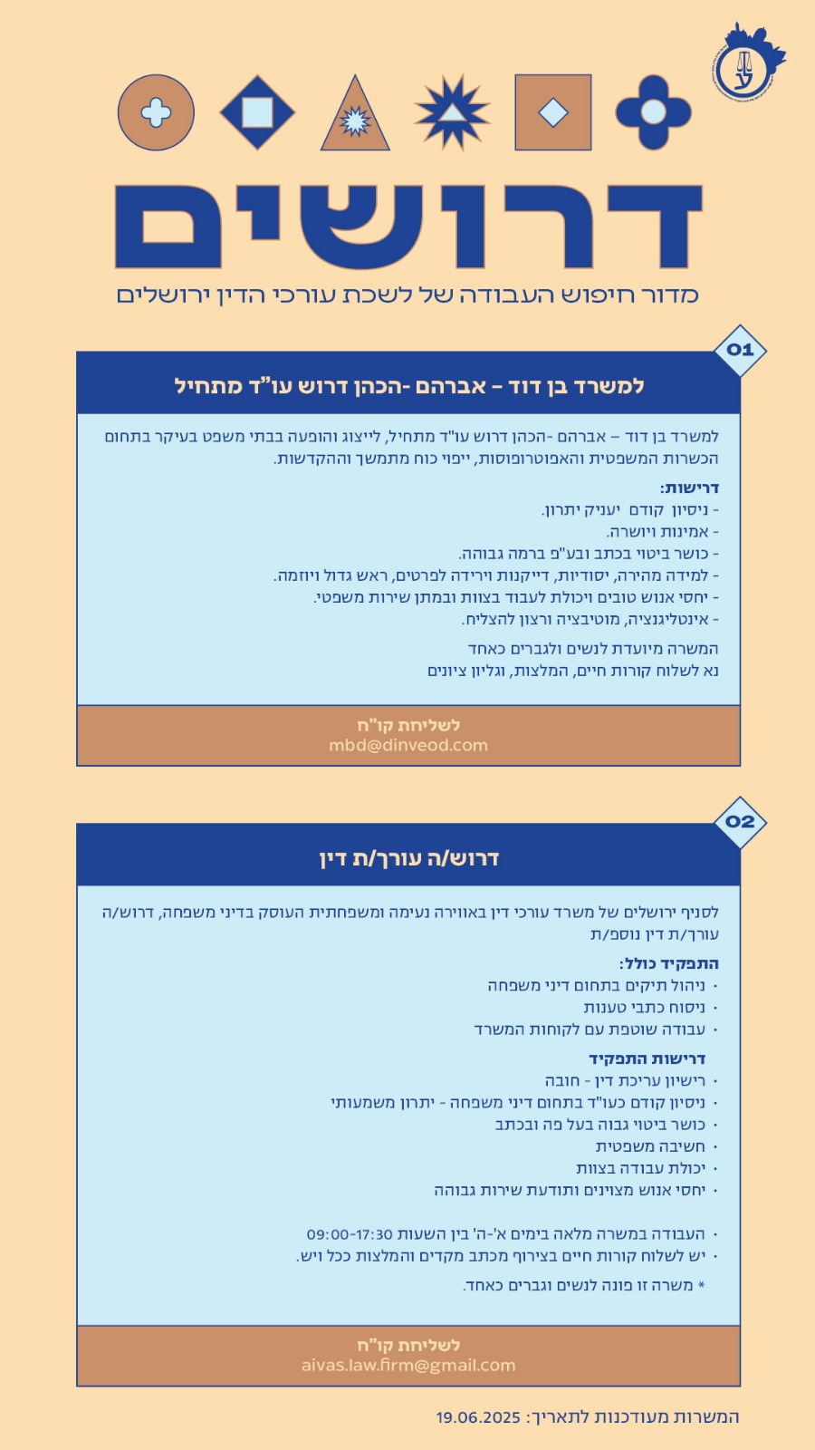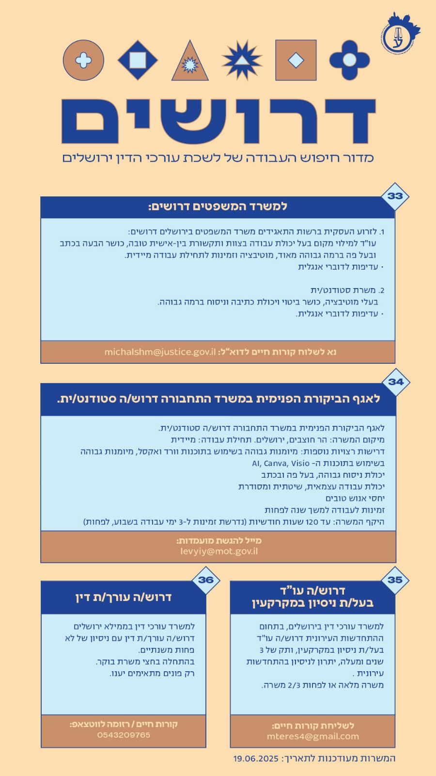 לשליחת קורות חיים: IRISVI@JUSTICE.GOV.IL