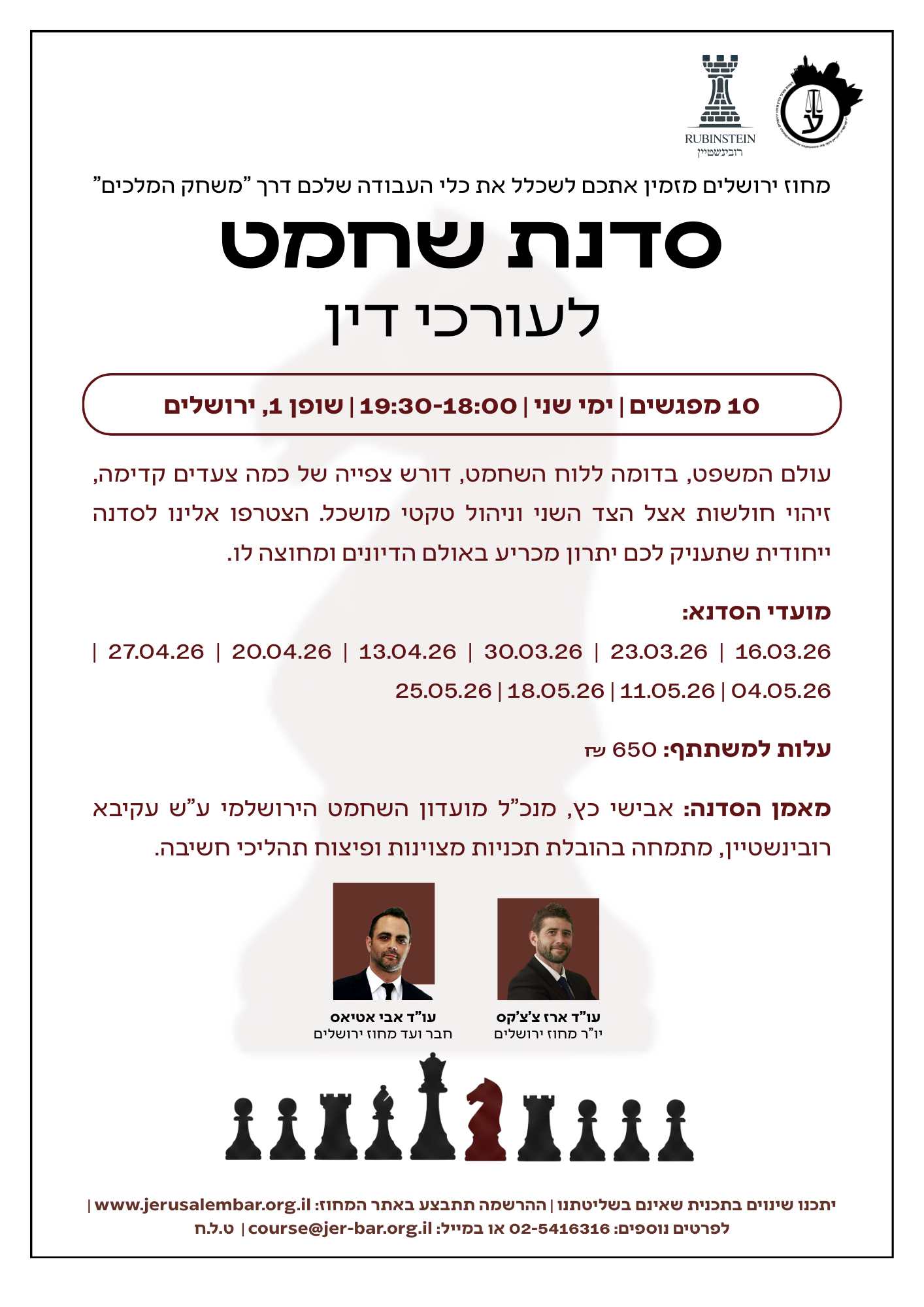 / סדנת שחמט לעורכי דין 16.03-25.05.2026