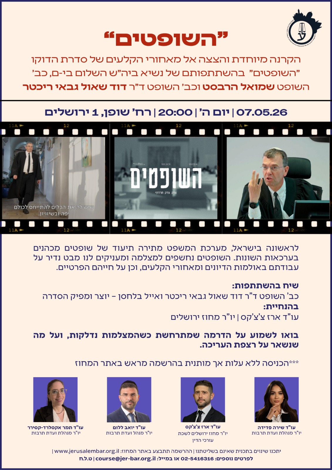 / הקרנת "השופטים" ושיח עם היוצר- 7.5.26