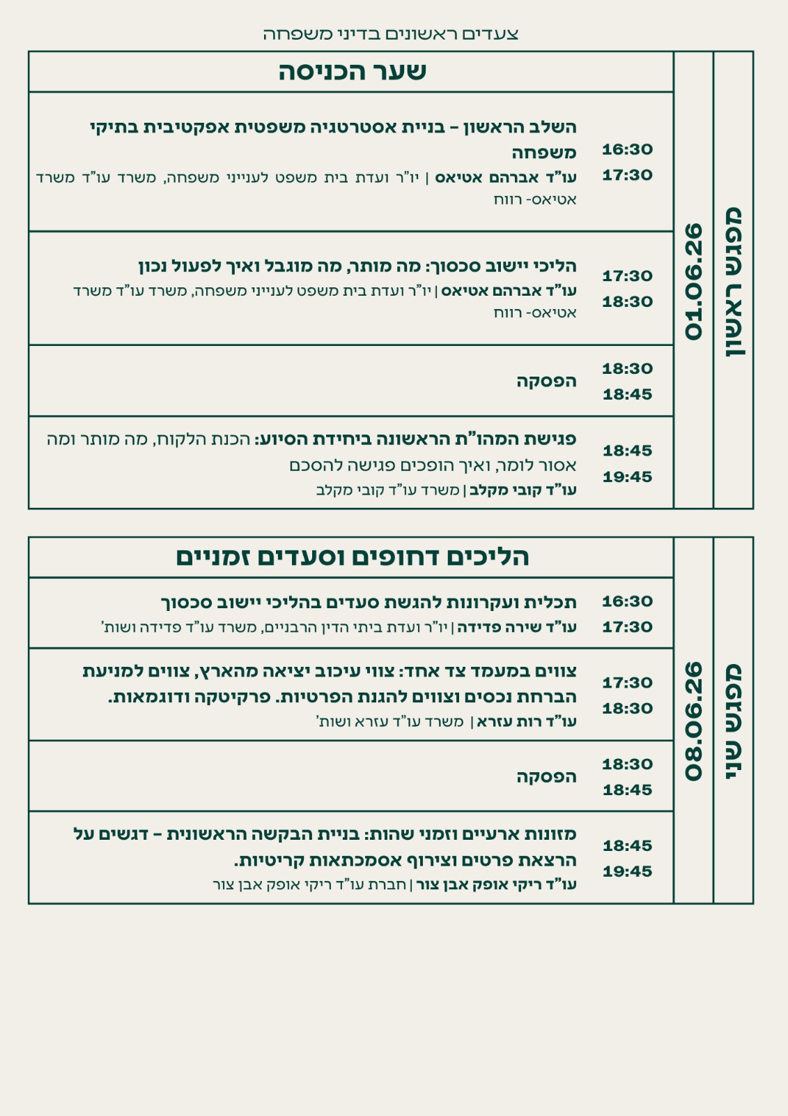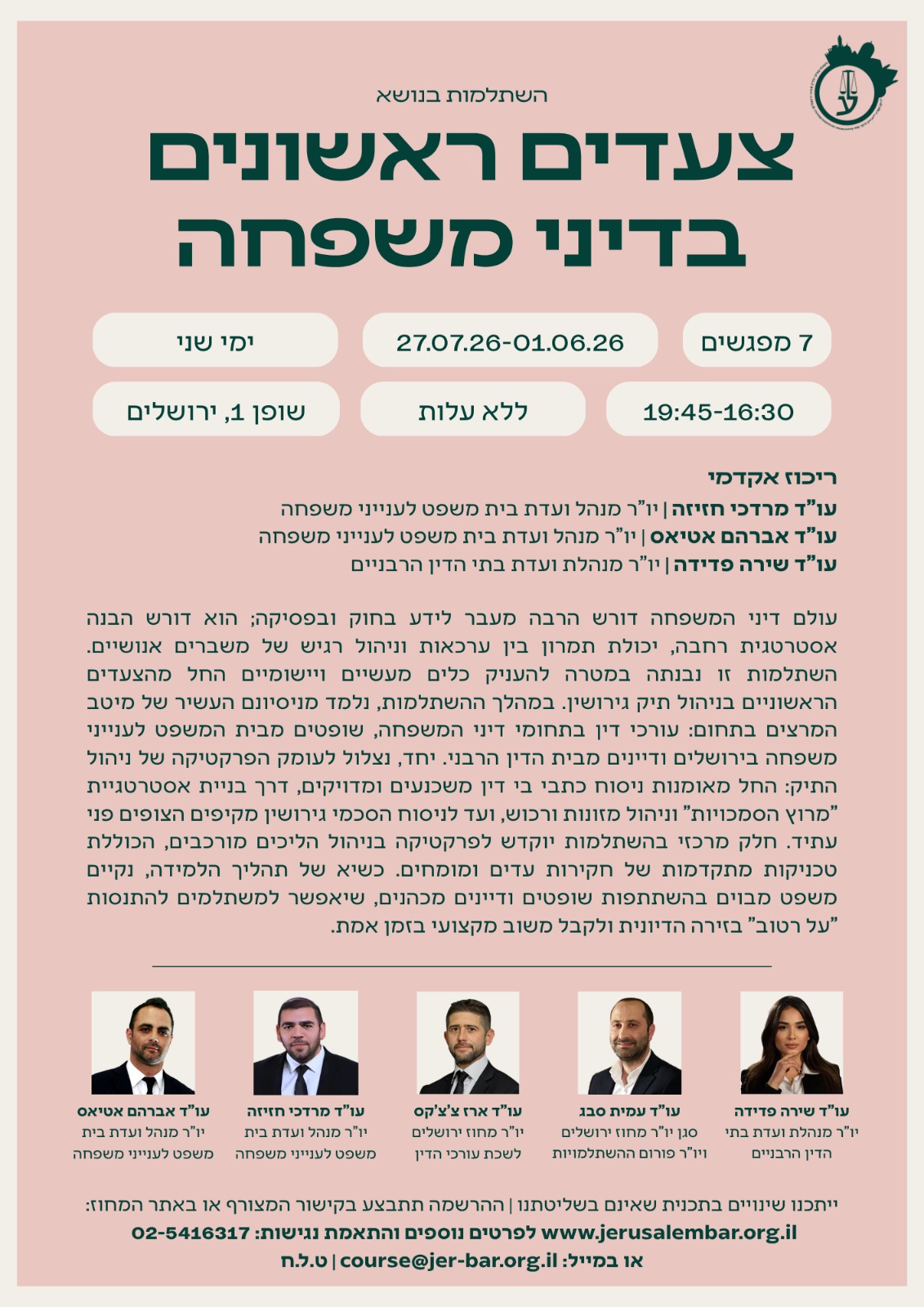 / צעדים ראשונים בדיני משפחה 01.06.26 – 27.07.26