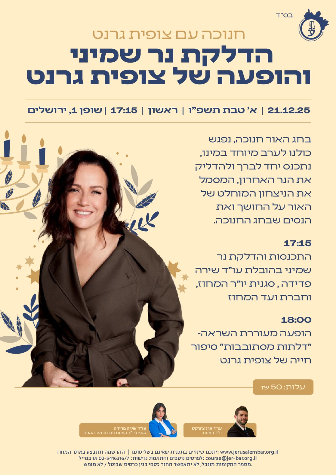 הדלקת נר שמיני והופעה של צופית גרנט 14.12.25
