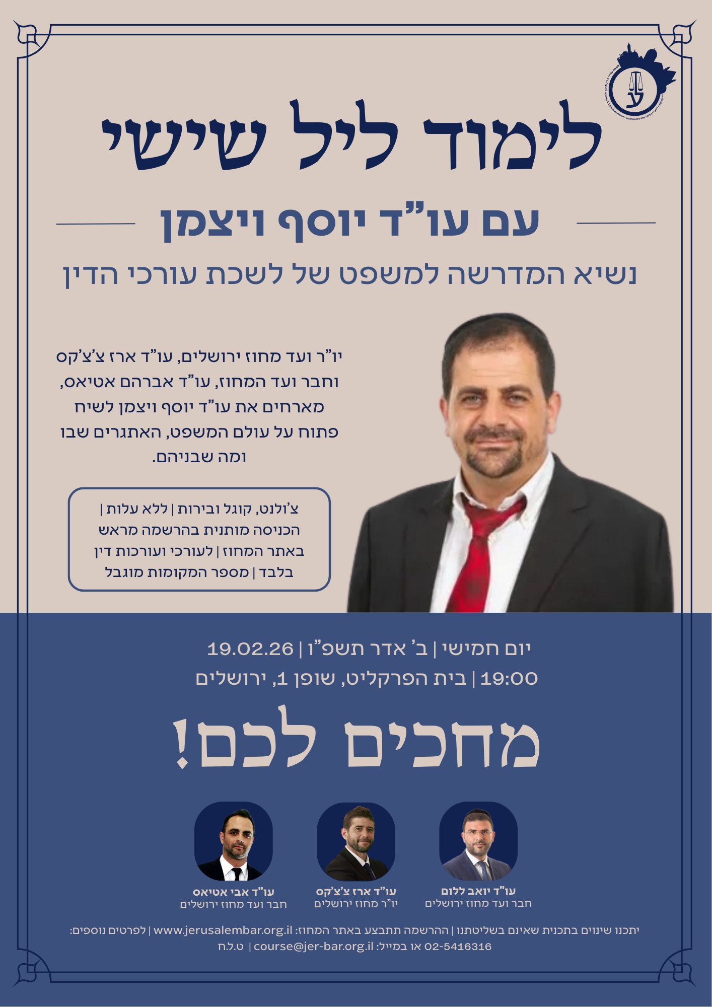 / ליל שישי עם עו"ד יוסף ויצמן 19.2.26