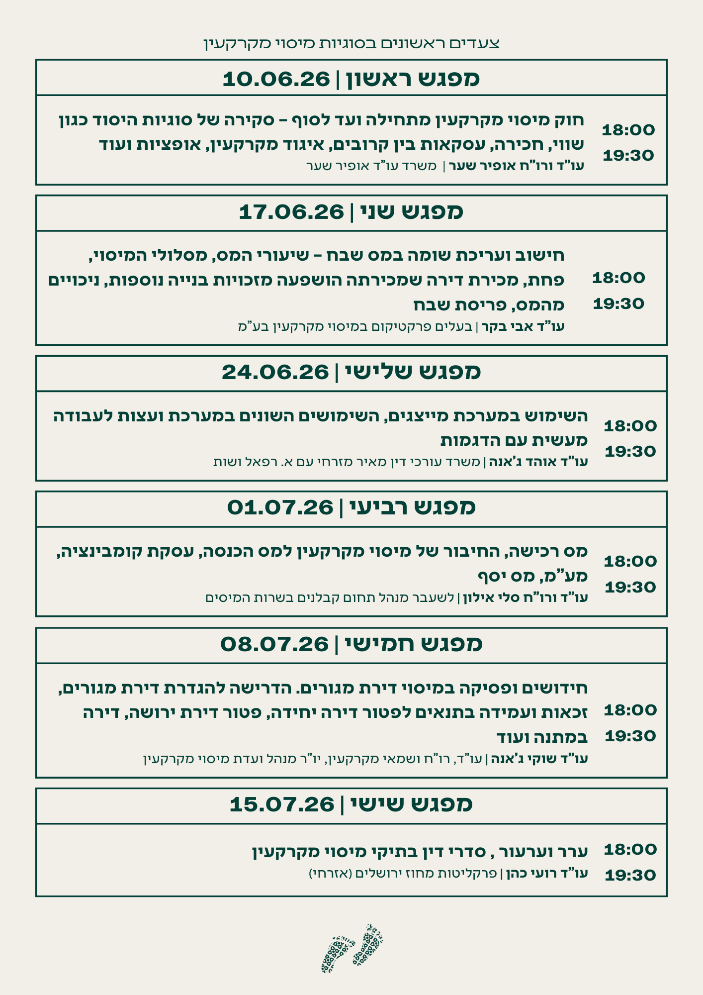 צעדים ראשונים – סוגיות במיסוי מקרקעין 10.06.26 – 15.07.26