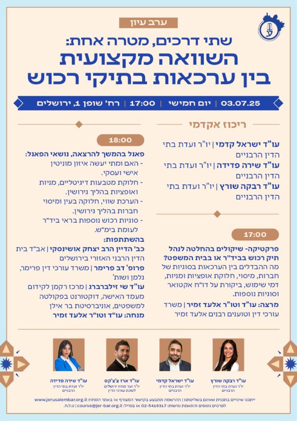 / השוואה מקצועית בין ערכאות בתיקי רכוש 03.07.25