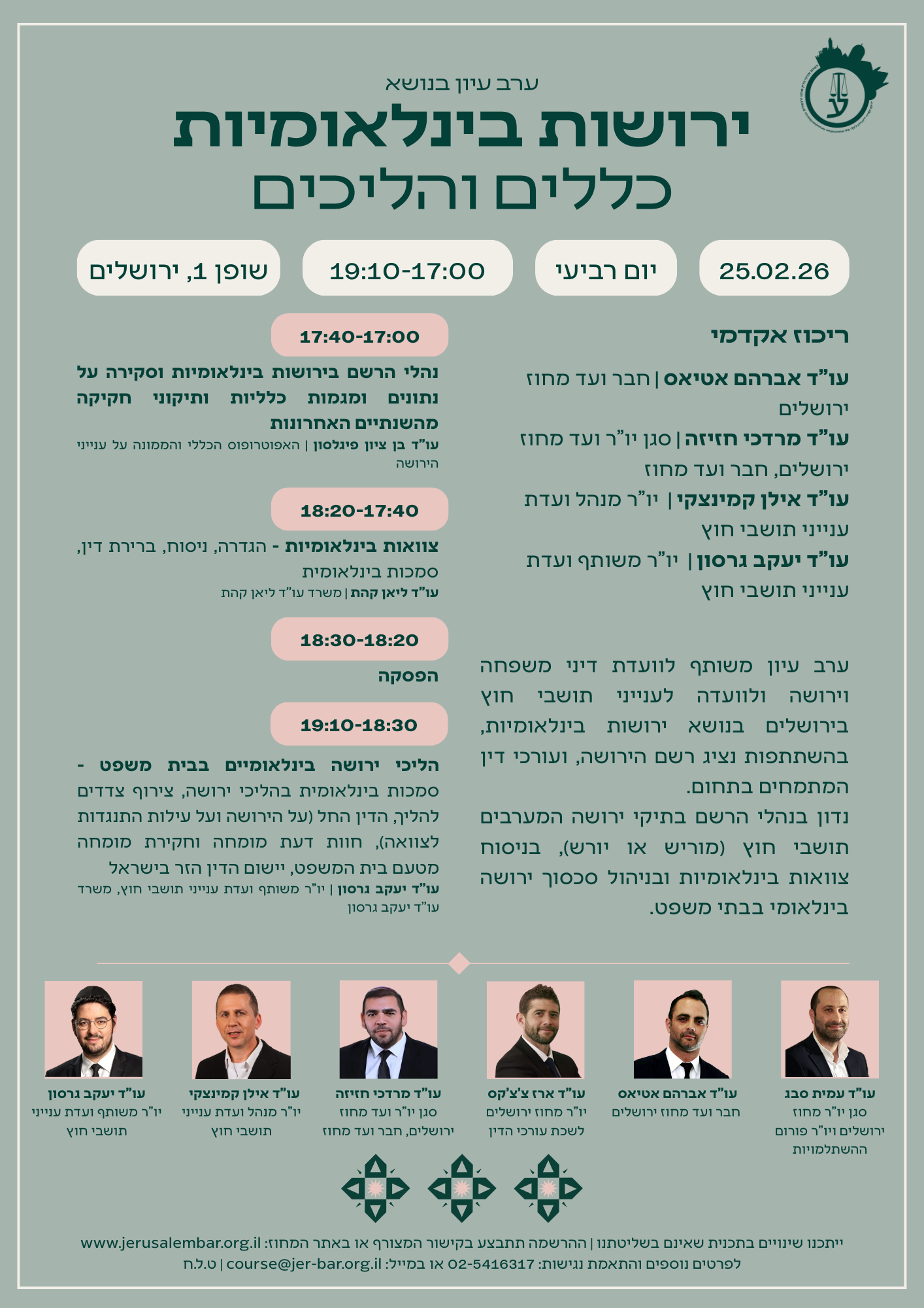 / ירושות בינלאומיות – כללים והליכים 25.02.26